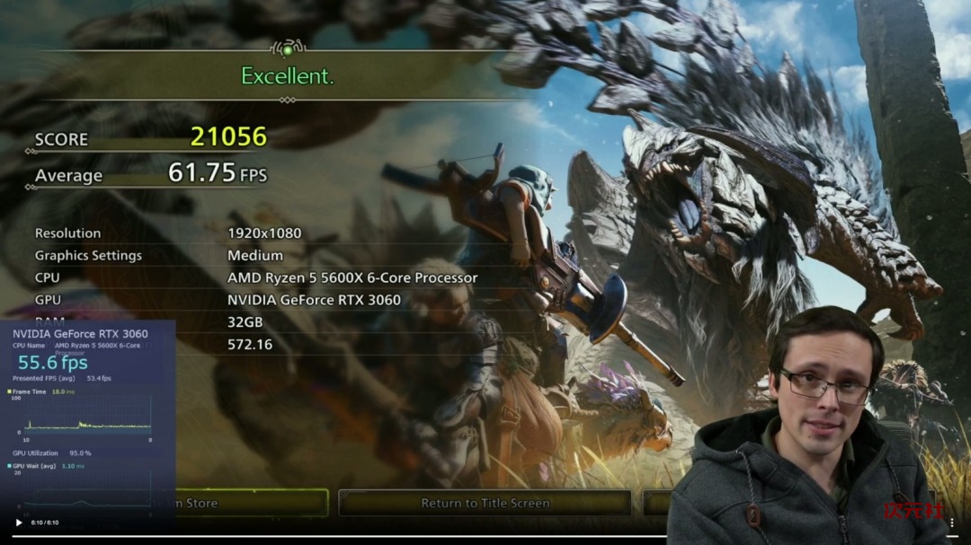 油管频道Daniel Owen分享了《怪物猎人:荒野》在RTX 3060搭配Ryzen 55600X上的性能分析。测试在三种不同的设置下进行:一种基于游戏的自动建议(中画质设置,DLSS设置为性能模式),一种是没有任何放大的中等画质设置,以及一种没有任何放大的超高画质设置。情况并不乐观,因为在所有三个测试中,该系统在密集的游戏场景中都难以保持稳定的60帧。